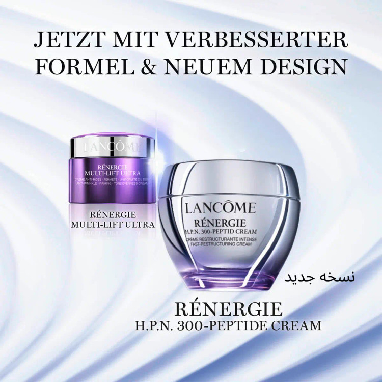 همه ما با افزایش سن شاهد پیدایش علائم پیری روی پوستمان هستیم. پپتیدها به دلیل نقش کلیدی خود در نوسازی پوست جزو بهترین ترکیبات در برابر علائم قابل مشاهده پیری هستند. کرم ضد پیری مولتی پپتید رینرژی HPN 300برند Lancome دارای بیش از 300 پپتید مختلف می باشد. این ترکیب غلیظ و قوی و منحصربفرد از پپتیدها، قدرت پپتیدها برای نوسازی سطح پوست را فراتر می برد. در واقع تعداد بی سابقه و تنوع پپتیدها در این کرم منحصر به فرد ضد پیری و اثر مکمل 300 پپتید باعث تحریک سریع تر و افزایش سرعت بازسازی پوست می شود. به همین دلیل این محصول با قدرت با پیری پوست مقابله کرده و آن را جوان تر می سازد.
