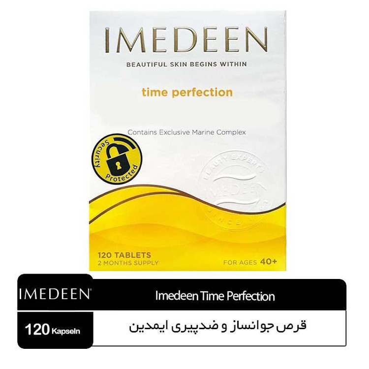 مکمل ایمِدین تایم پرفکشن برای پوستهای سن بالای ۴۰ سال طراحی شده که ممکنه علائم پیری، کاهش رطوبت، ناهمواری رنگ یا آسیب ناشی از آفتابشیدگی را تجربه کنند. فرمول این مکمل با استفاده از ترکیبات نوآورانه، مثل Marine Complex، زینک و ویتامین C، تلاش میکند از داخل بدن به بهبود کیفیت پوست کمک کند. تولیدکننده اعلام کرده که با مصرف منظم دو قرص در روز همراه آب، تأثیر آن طی حداقل ۱۲ هفته قابل مشاهده است.